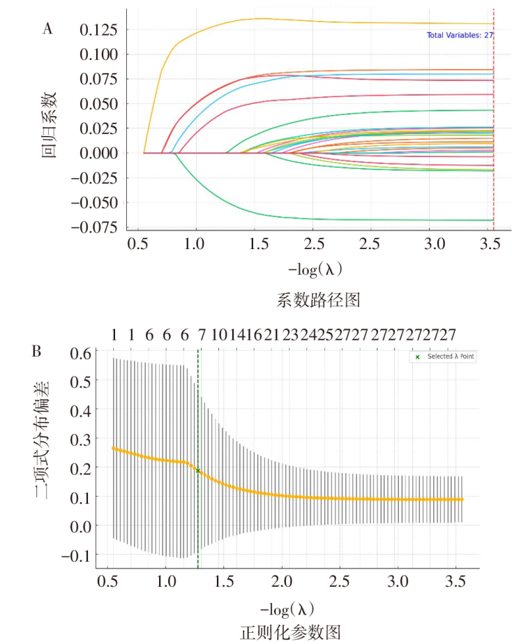 关键词: 关节炎, 类风湿, 动脉粥样硬化, 危险因素, 预测模型, Lasso-Logistic回归