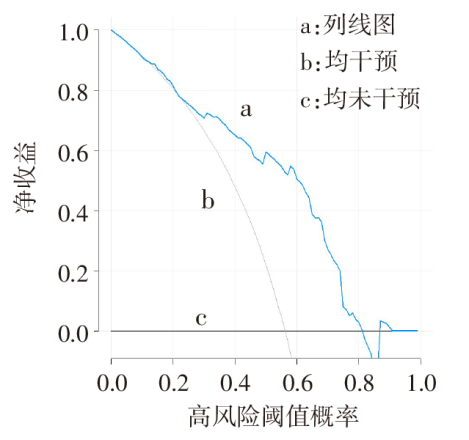 目的 构建并验证老年糖尿病性白内障患者术源性散光(SIA)风险预测列线图模型。方法 选取行白内障超声乳化术治疗的309例患者为研究对象。根据术后是否发生SIA,将患者分为SIA组(158例)和非SIA组(151例)。采用多因素Logistic回归分析影响糖尿病性白内障患者发生SIA的因素,构建SIA风险预测列线图模型,并采用受试者工作特征(ROC)曲线、校准曲线及决策曲线分析进行模型验证。结果 SIA组患者年龄、晶状体核硬度Ⅲ—Ⅳ级比例、切口大小≥3.00 mm比例、切口形状为梯形透明角膜切口比例、角膜切口长度≥1.75 mm比例及角膜水平直径均高于非SIA组(P<0.05);2组患者性别、体质量指数、糖尿病病程、有无高血压史、有无心血管疾病史、糖尿病视网膜病变分级、眼轴长度、前房深度、中央角膜厚度、全角膜屈光力、散光轴位、超声乳化时间差异均无统计学意义(P>0.05)。多因素Logistic回归分析显示,切口大小、切口形状、角膜切口长度及角膜水平直径是糖尿病性白内障患者发生SIA的影响因素(P<0.05);基于上述4个影响因素构建预测糖尿病性白内障患者发生SIA的列线图模型。ROC曲线分析显示,预测SIA的曲线下面积为0.810(95%CI:0.761~0.860);Hosmer-Lemeshow检验及校准曲线分析显示,该列线图模型拟合情况较好(χ2=11.142,P=0.194);决策曲线分析显示,当高风险阈值概率0.35~0.8时,模型的临床净获益率>0。结论 基于糖尿病性白内障患者发生SIA的因素构建的SIA风险预测列线图模型具有良好的区分度、校准度及临床实用性。