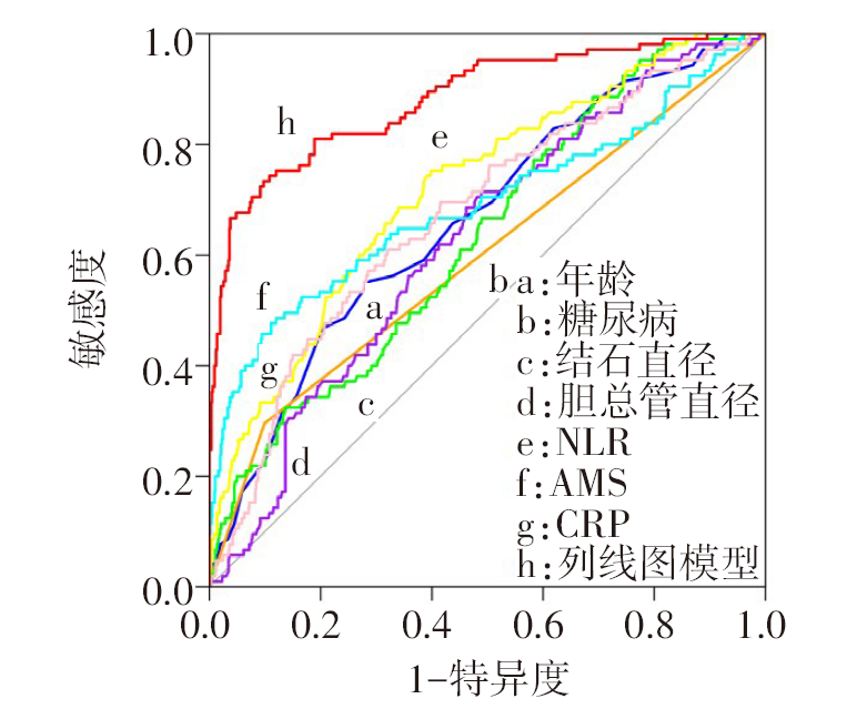 表4 各变量及列线图预测CBDS并发ABP的价值