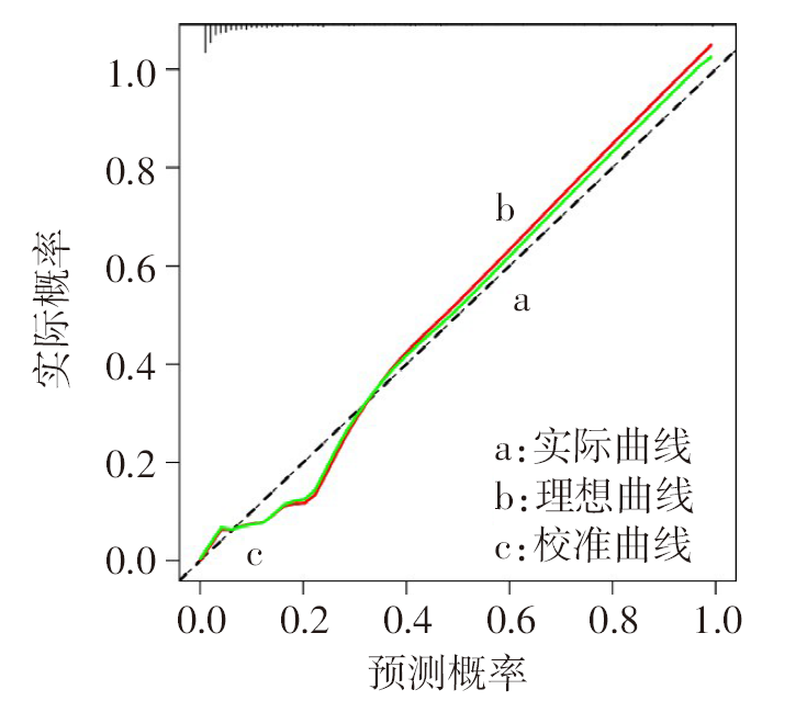 目的 分析胆总管结石(CBDS)并发急性胆源性胰腺炎(ABP)的危险因素并构建预测模型。方法 纳入并发ABP的CBDS患者105例为ABP组,另纳入未并发ABP的CBDS患者105例为非ABP组。收集所有CBDS患者临床资料,通过多因素非条件Logistic回归分析CBDS并发ABP的危险因素,并据此构建CBDS并发ABP的列线图预测模型,H-L检验预测模型的拟合度;受试者工作特征(ROC)曲线分析预测模型的预测价值,C-index分析预测模型的区分能力,校准曲线分析预测模型的准确性,决策曲线分析预测模型的临床效益。结果 Logistic回归分析显示,年龄高、糖尿病、结石直径大、胆总管直径大、中性粒细胞/淋巴细胞比值(NLR)高、血淀粉酶(AMS)高、C反应蛋白(CRP)高为CBDS并发ABP的独立危险因素(P<0.05)。基于影响CBDS并发ABP的危险因素构建列线图预测模型,该预测模型H-L检验P>0.05。ROC曲线显示,该预测模型预测CBDS并发ABP的曲线下面积为0.884,C-index为0.884,校准曲线显示模型预测概率趋势接近理想曲线,决策曲线显示预测模型净收益范围较大。结论 基于CBDS并发ABP的危险因素构建的列线图预测模型具有良好的预测能效。
