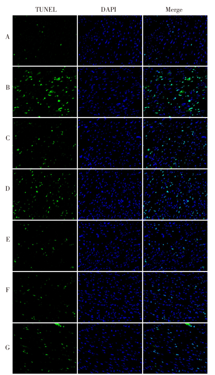 目的 探讨炙甘草汤对心房颤动(AF)大鼠模型心房重构及微小RNA(miR)-26b-5p/母亲DPP同源物(SMAD)4通路的影响。方法 构建AF大鼠模型,将造模成功的大鼠随机分为AF组、维拉帕米组、炙甘草汤低剂量(炙甘草汤-L)组、炙甘草汤高剂量(炙甘草汤-H)组、炙甘草汤-H+anti-NC组、炙甘草汤-H+miR-26b-5p抑制剂(anti-miR-26b-5p)组,每组18只;另取18只健康大鼠作为对照组。检测各组大鼠心功能、体外AF诱发率;苏木精-伊红(HE)染色及Masson染色观察心房组织病理变化;原位末端标记(TUNEL)染色检测心房组织心肌细胞凋亡情况;免疫组化检测心房组织Ⅰ型胶原(Col Ⅰ)、α-平滑肌肌动蛋白(α-SMA)表达;qRT-PCR检测miR-26b-5p相对表达水平;Western blot检测SMAD4、BCL-2相关X蛋白(BAX)、活化的胱天蛋白酶-3(C-caspase3)的表达;双萤光素酶实验验证miR-26b-5p与SMAD4的靶向关系。结果 与对照组相比,AF组心房组织出现严重病理损伤,心肌细胞结构异常、肿胀稀疏排列紊乱、蓝色胶原沉积明显;左室收缩末期内径(LVESD)、左室舒张末期内径(LVEDD)升高,左室射血分数(LVEF)、左室缩短分数(LVFS)降低;AF诱发率、胶原面积百分数、细胞凋亡率增加;BAX、C-caspase3、 ColⅠ、α-SMA、SMAD4蛋白表达水平升高,miR-26b-5p水平降低(P<0.05)。与AF组相比,维拉帕米组、炙甘草汤-L组、炙甘草汤-H组治疗可逆转上述指标的变化趋势,减轻心房组织病理损伤,减少蓝色胶原沉积。炙甘草汤-H+anti-miR-26b-5p组可逆转炙甘草汤-H对AF大鼠模型心房重构的改善作用。Starbase网站及双萤光素酶基因报告结果显示,miR-26b-5p与SMAD4之间存在靶向关系。结论 炙甘草汤可能通过上调miR-26b-5p进而抑制SMAD4表达,改善AF大鼠心房重构。
