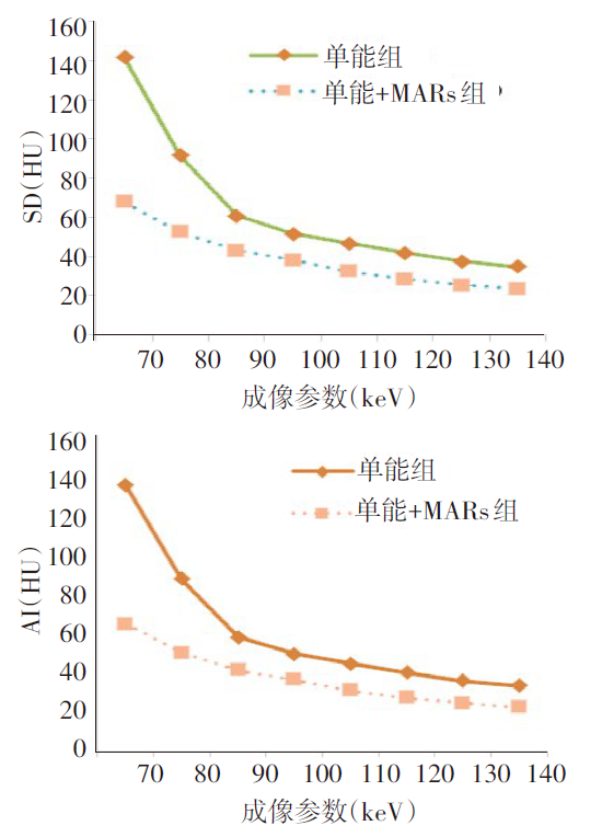 | 单能组 | 单能+MARs | Z | 单能组 | 单能+MARs | Z | |