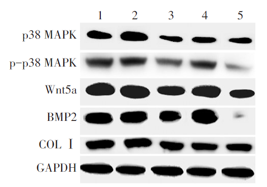 | 组别 | Wnt5a | p38 MAPK | p-p38 MAPK | BMP2 | COL Ⅰ |