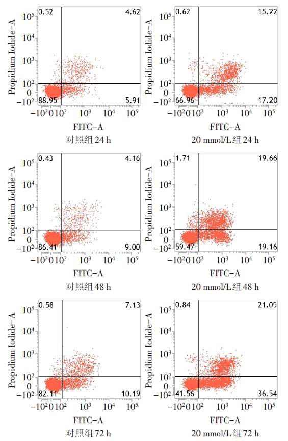 | 20 mmol/L组 | 64.11±9.62ab | 17.97±1.02abc | 12.67±0.79abc |