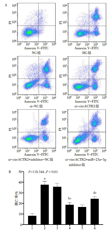 | si-circACTR2+ miR-23a-3p inhibitor组 | 1.15±0.14 | 0.64±0.06de |