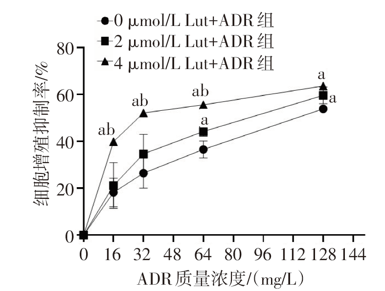 Objective To investigate the mechanism of luteolin′s (Lut) reversal effect on multidrug resistance of chronic myeloid leukemia K562/ADR cells. Methods CCK-8 assay was used to detect drug resistance in K562 and K562/ADR cells 24 hours after treatment with different doses of adriamycin (ADR). CCK-8 assay was used to assess the cytotoxicity and sensitizing effect of Lut on ADR after K562/ADR cells were treated with Lut alone or in combination with ADR for 24 hours. K562/ADR cells in logarithmic growth phase were separated into three group: 0 μmol/L Lut, 2 μmol/L and 4 μmol/L Lut groups. ADR accumulation in cells was measured using flow cytometry. Nuclear factor erythroid-2-related factor 2 (Nrf2), multidrug resistance associated protein 1 (MRP1), P-glycoprotein (P-gp) and glutathione-S-transferase-PI (GST-pi) mRNA and protein expressions were identified using RT-PCR and Western blot assay. Glutathione (GSH) kit was used to detect intracellular GSH content. Results Compared with K562 cells, K562/ADR cell line was significantly resistant to ADR, and the drug resistance was 53.69 times. K562/ADR cell proliferation was decreased to variable degrees by different doses of Lut when compared to the 0 μmol/L Lut group (P<0.05). The proliferation inhibition rates of K562/ADR cells treated with 2 and 4 μmol/L Lut were less than 10%, indicating that the concentration of Lut was non-toxic. Compared with the 0 μmol/L Lut group, the 2 μmol/L Lut group and the 4 μmol/L Lut group showed significantly increased ADR growth inhibition rate on K562/ADR and increased accumulation of ADR in cells, improved the reversal resistance fold, and decreased GSH content in cells. MRP1, P-gp, GST-pi and Nrf2 mRNA and protein expression were reduced in cells (P<0.05). The effect of 4 mol/L Lut was greater than that of 2 mol/L Lut. Conclusion Lut may decrease K562/ADR cell proliferation and reverse ADR medication resistance. The mechanism could be connected to the downregulation of Nrf2, MRP1, P-gp and GST-pi expression, which leads to an increase in ADR accumulation in K562/ADR cells.