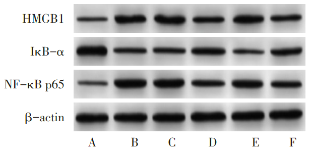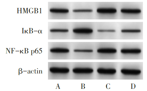 | 组别 | HMGB1/ β-actin | IκB-α/ β-actin | NF-κB p65/ β-actin | ||||