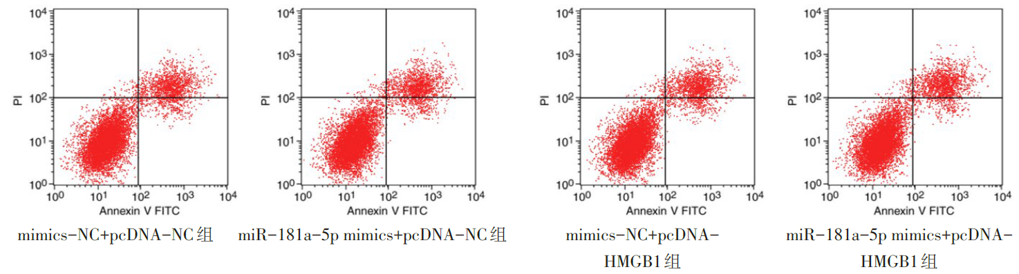 | 组别 | 增殖率/ % | 凋亡率/ % | miR-181a -5p | HMGB1 mRNA | |||