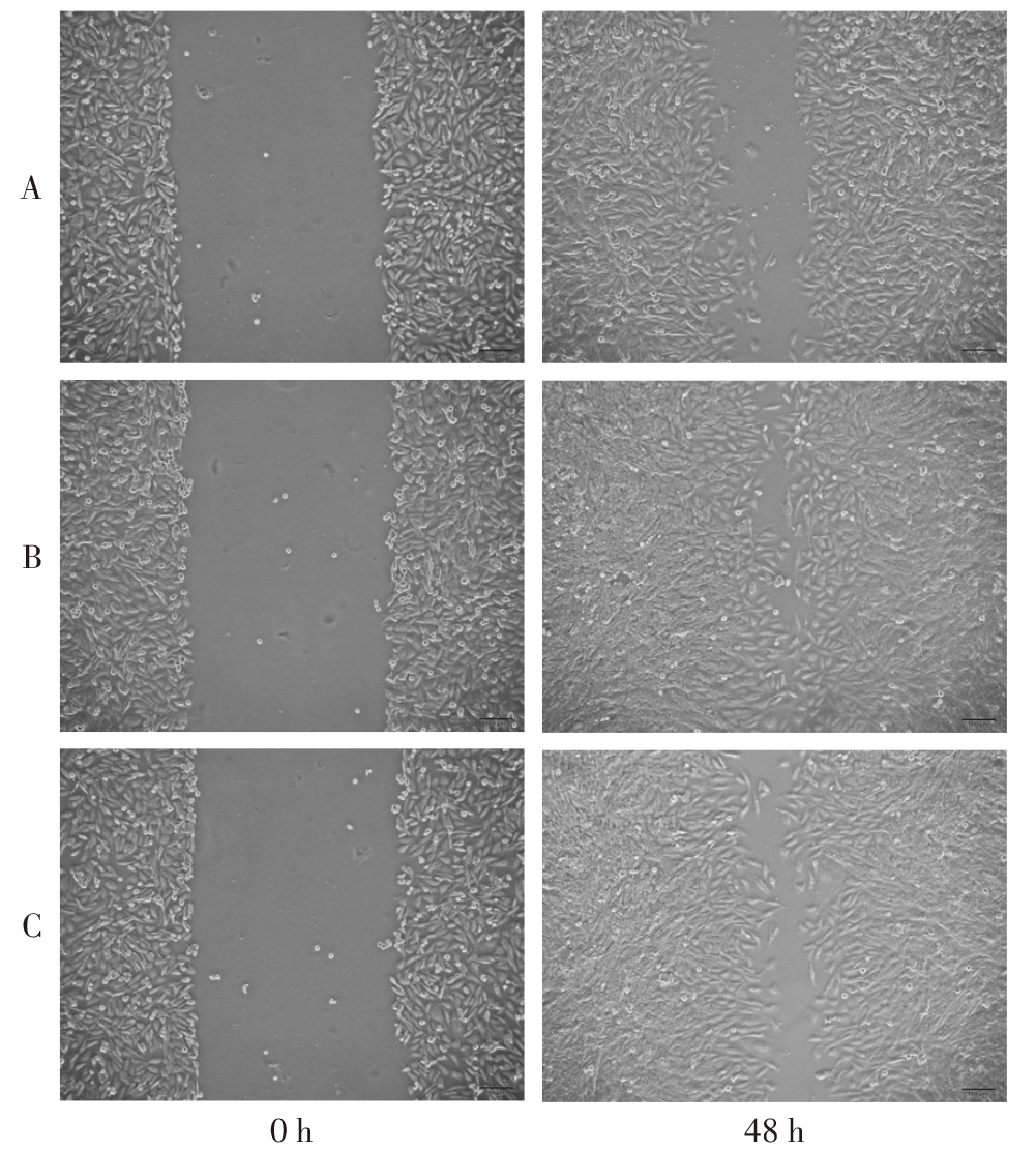 Tab.4 Comparison of cell scratch healing rate and invasion number between three groups