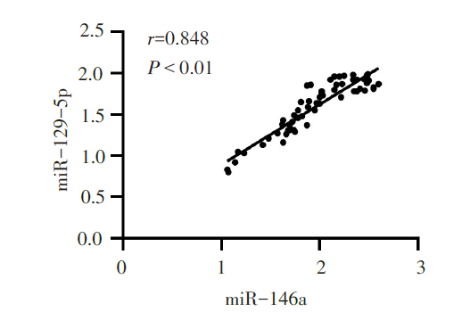 Tab.2 Comparison of serum levels of miR-129-5p and miR-146a between the two groups of patients